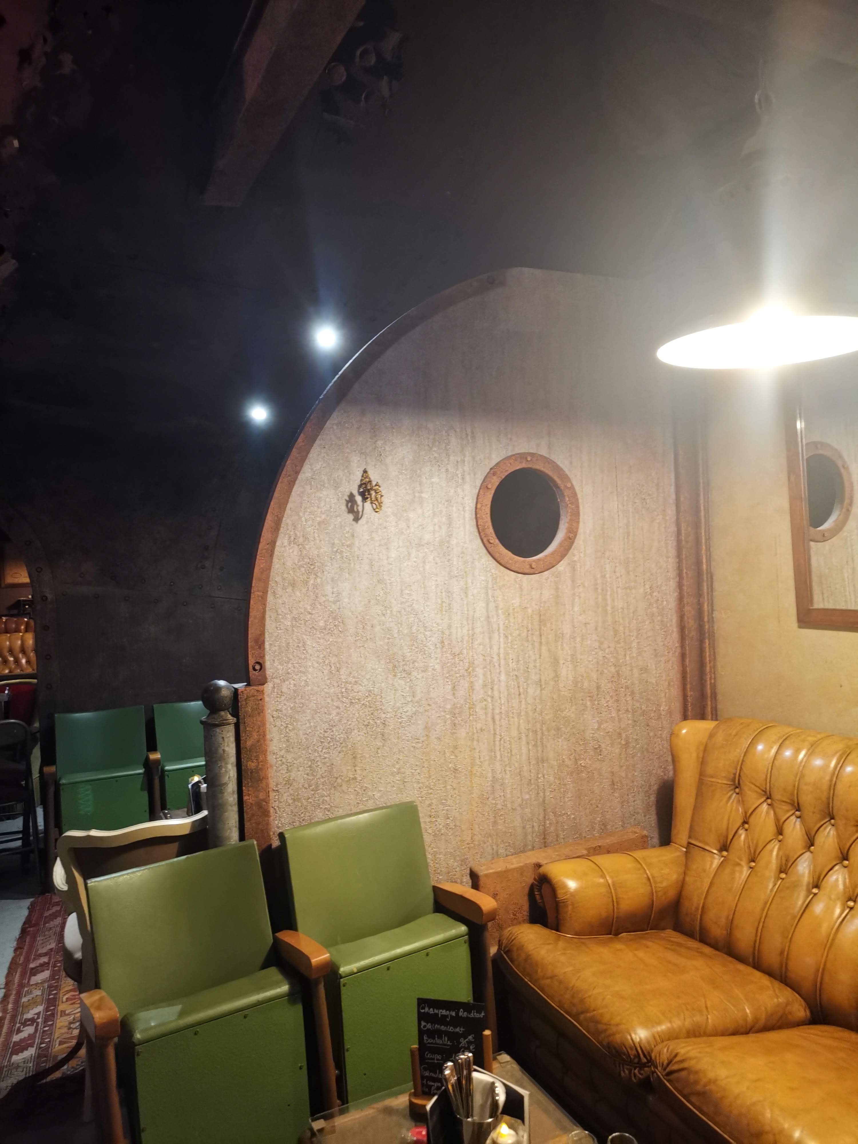 Endroit magique dès qu’on pousse la porte d’entrée : le décor style Jules Verne est somptueux et renversant. La salle est toute en longueur, on peut opter pour des petites niches avec vieux fauteuils club moelleux, ou bien des places assises à table pour manger. L’ambiance est cozy chaleureuse et le personnel prévenant. Grand choix de cocktails, et la carte des vins est riche. La scène est tout au fond, mais le son est bon partout. Hier soir nous y avons découvert le groupe «South-61» : Excellent mélange de Soul, Jazz, Funk, Gospel. Nous nous y sommes régalé tous les sens !