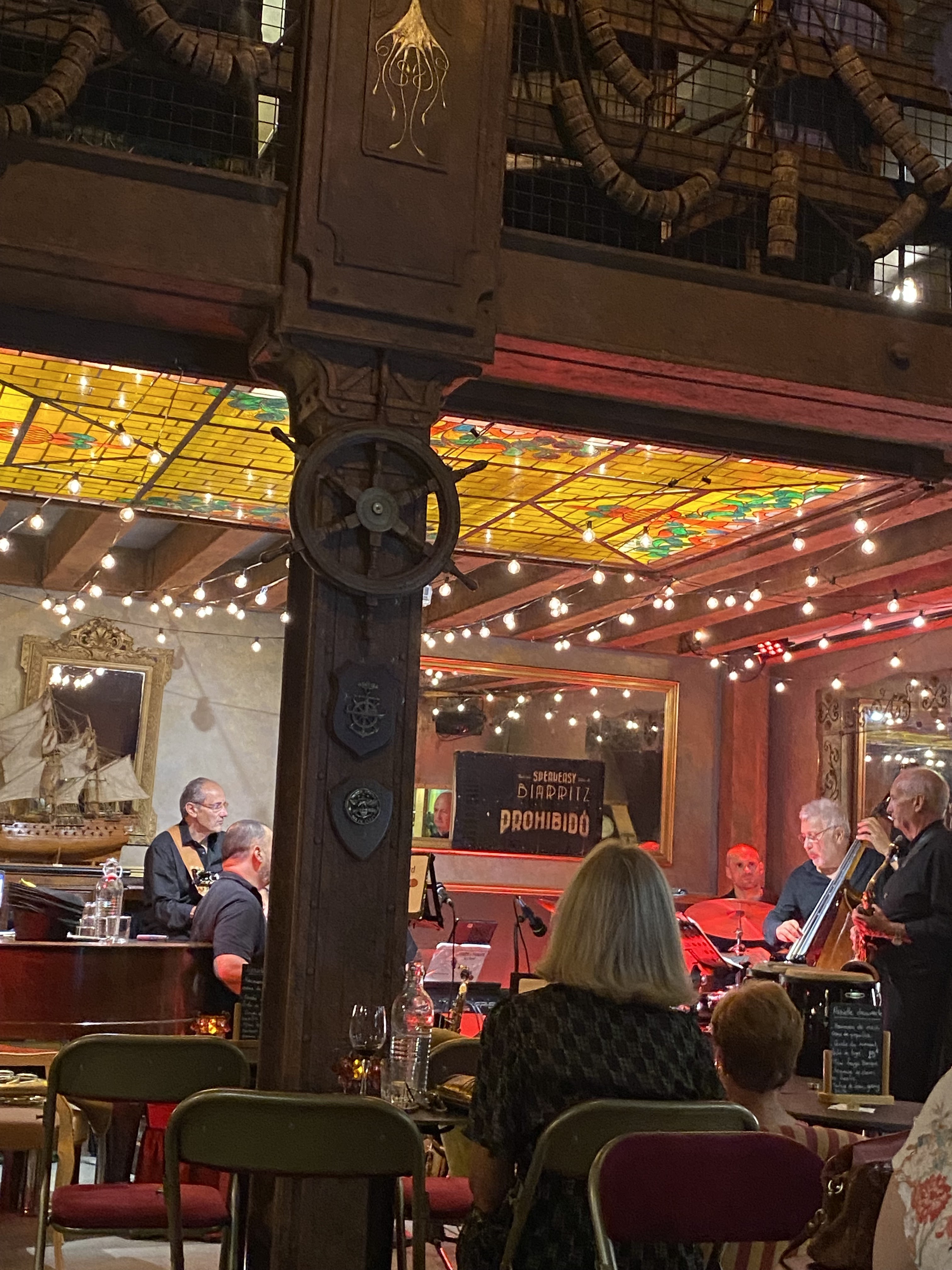 Jazz club Biarritz. Cadre étonnant tendance 20 000 lieux sous les mers. Dépaysant à souhait ! Accueil souriant mais amateur... Service agréable... Cuisine correcte... Bémol : prix élevés. Quatuor de jazz au top !